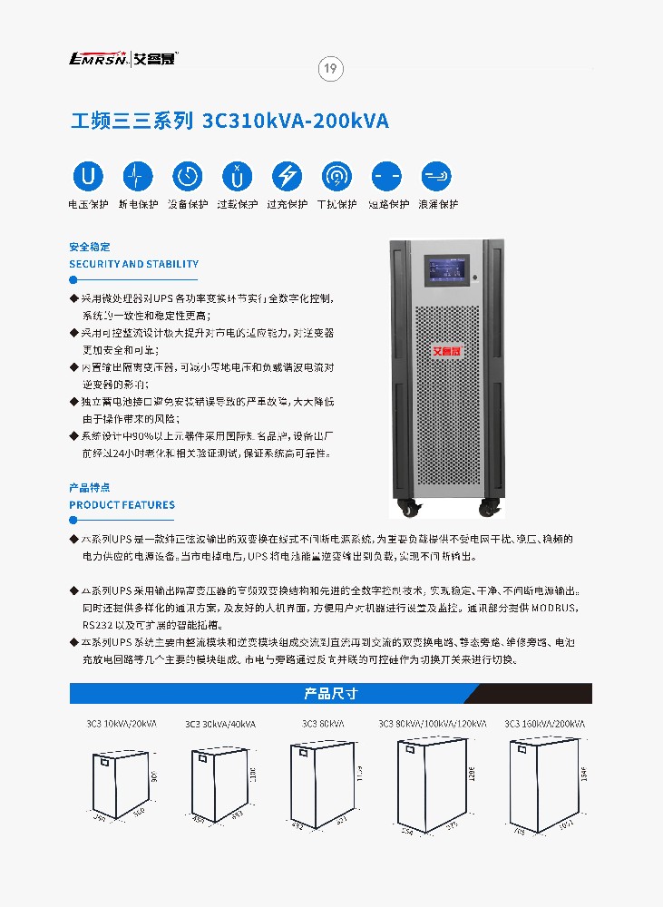 艾睿晟UPS电源三进三出工频机,内置输出隔离变压器,功率范围10KVA~200KVA,功率因数0.8,详情参数可以咨询全国统一服务电话400-887-6565.